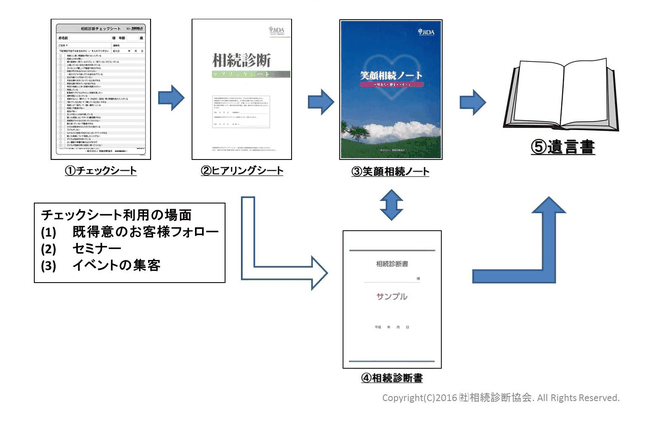 相続診断士は当協会オリジナルツール等を使って、この5つのステップで笑顔相続へと導いていきます。